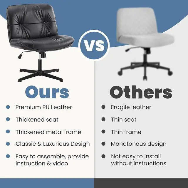 Stable & Durable ConstructionBuilt with a sturdy metal frame and criss-cross leg design, this chair supports up to 300lbs, ensuring long-lasting durability. The wheel-less construction provides stability and a strong center of gravity, preventing any unwanted slipping or tipping. Perfect for those who seek both style and stability, this chair is ideal for those who appreciate a robust, no-nonsense design.
