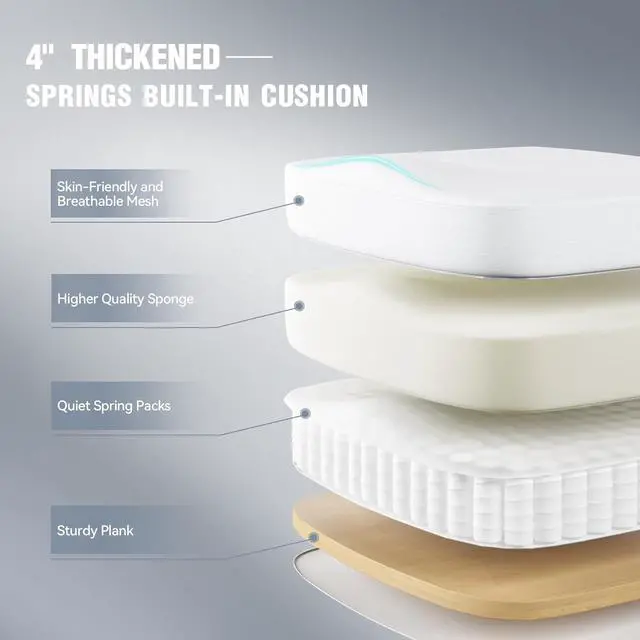 Pocket Spring Structure: Experience the epitome of support with the computer chair' s innovative pocket spring cushion. Each internal spring operates independently, adapting to pressure and body weight to evenly distribute weight, minimize pressure points, and enhance overall comfort.
