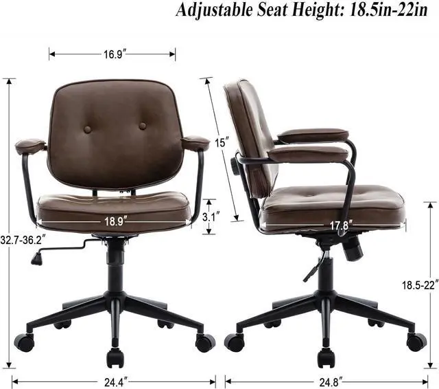 RETRO DESIGN: Combine retro and modern style on function and comfort, it fits at home as well as in the office. This office chair is designed with padded armrest, metal frame, PU leather cushion and adjustable backrest, giving you different seating experience.