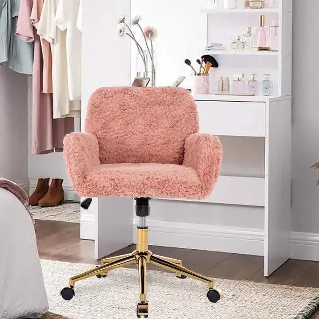 Versatile & Fashionable Fluffy ChairThis pink fluffy faux fur chair is suitable for different environments, it can be used as a living room chair, home office desk chair, bedroom vanity chair, also can be used as a kid room chair, this cute desk chair whether it is placed in your home, makeup, study, or in your office all are perfect choice.