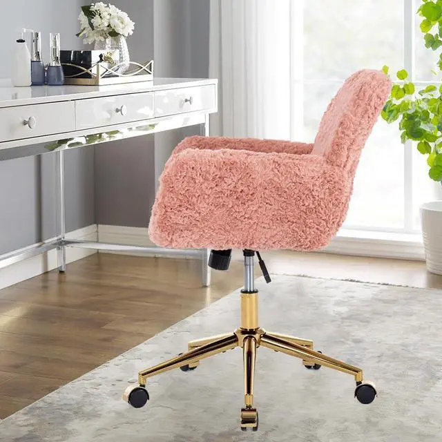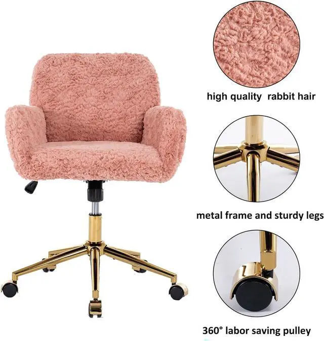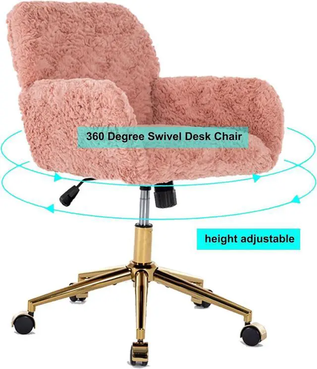 360 Degree Swivel Desk ChairThe pink vanity chair has 360 degree swivel function and come with 5 smooth universal nylon wheels that make you move easily, faux fur pink desk chair suit for working, studying, dressing makeup, etc.