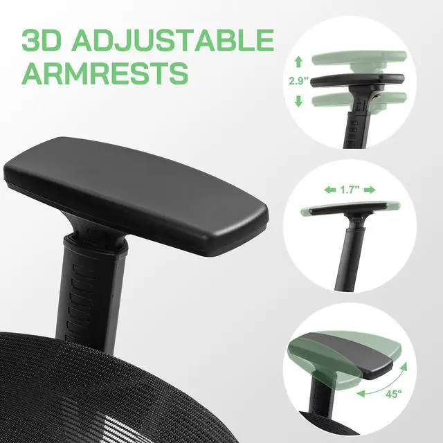 Super Breathable & High Back Mesh Chair: The comfortable computer chair with lumbar support, headrest, backrest support. The seat cushion are made from a specially processed mesh material, it is cool and highly elastic, conforms to the body' s curves, offers good breathability, does not trap heat, is not easily deformed, and is wear-resistant.