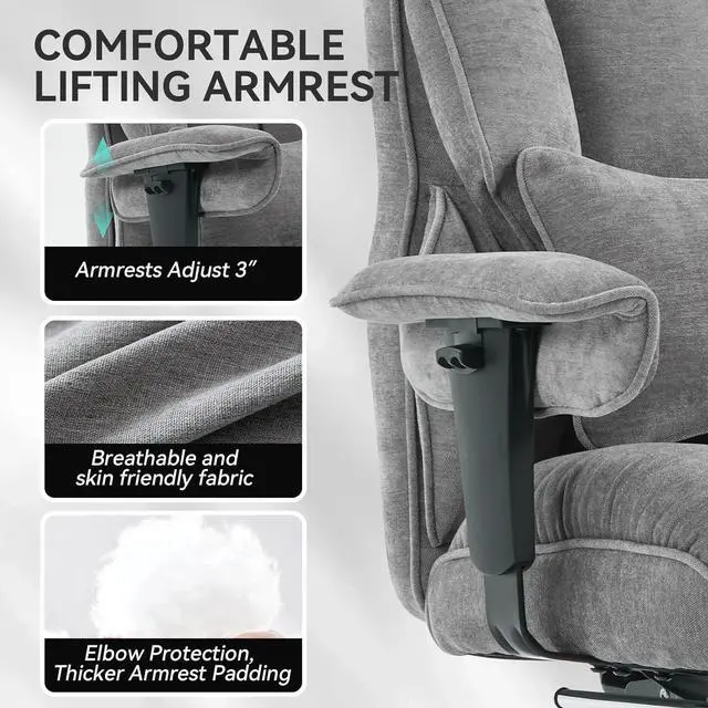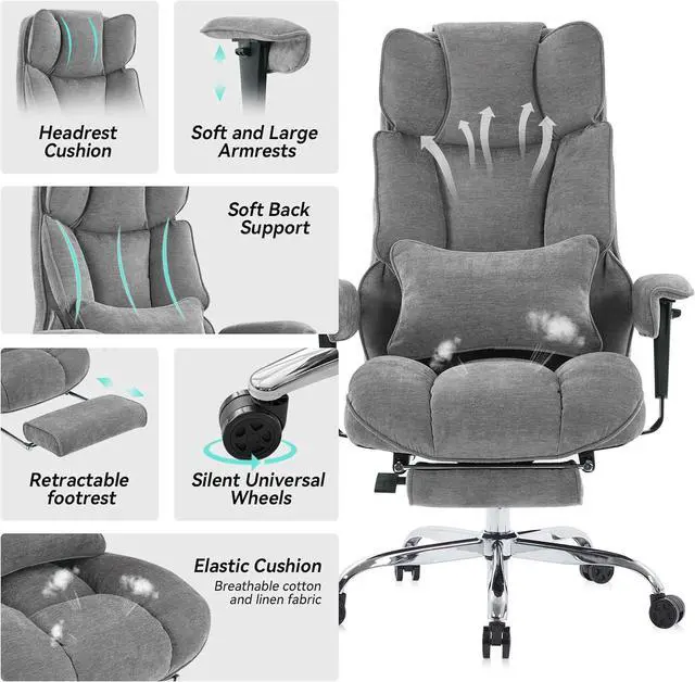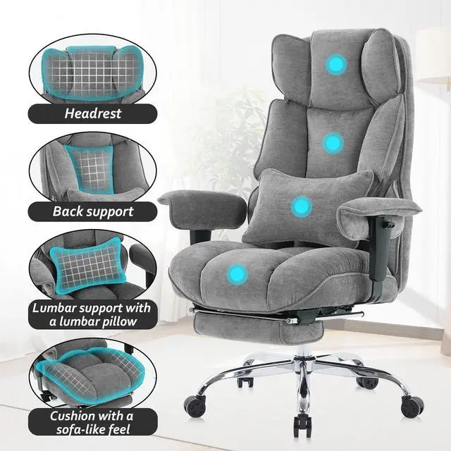 MULTI-FUNCTIONAL EXECUTIVE OFFICE CHAIR: The office chair features a 360°swivel base for effortless movement, adjustable height settings, and a tilt/swivel system allowing you to customize the backrest angle up to 135°for unparalleled comfort. Additionally, the large office chair includes a retractable footrest, saving space while offering comfortable foot support whenever needed. The big and tall office chair also doubles as a great computer chair or gaming chair with foot rest.