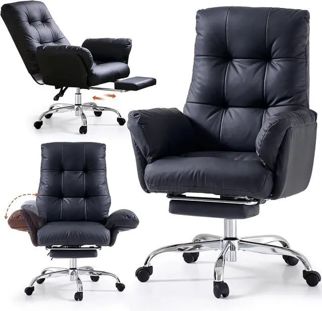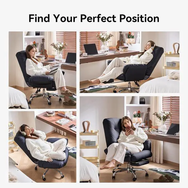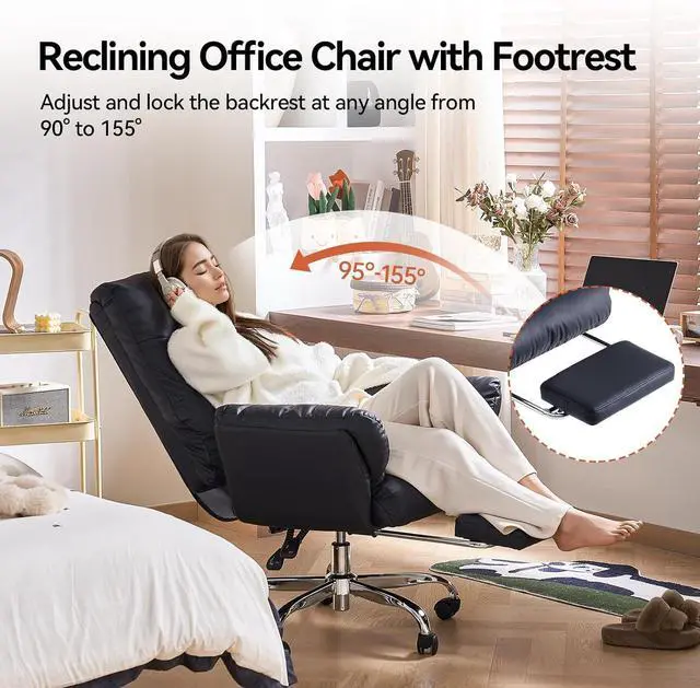 Reclining Function with Foot Rest: Enjoy the luxury of reclining with a built - in foot rest. This desk chair with foot rest allows you to lean back and stretch your legs, good for taking short breaks or relaxing after a long day of work. You can adjust the reclining angle 90°-155°to your preference, making it a multi - functional piece for your home office.