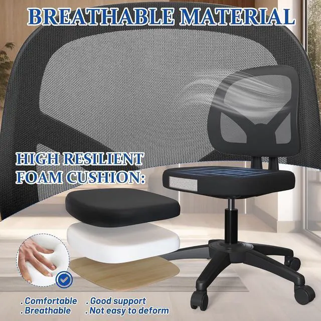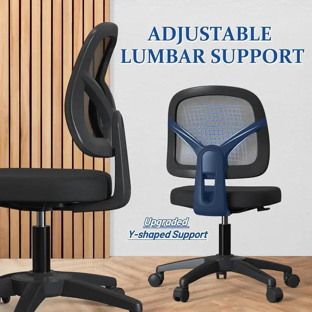 Y-Shaped Lumbar Backrest: This armless office chair features a unique Y-shaped backrest design that provides strong support for your back and ensures that your back is comfortable while in use