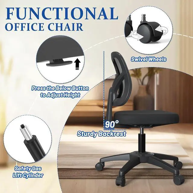 Functional Office Chair No Arms: Our desk chair comes with a safe gas cylinder for flexible height adjustment. 360 rotating wheel and seat can also ensure flexibility in use