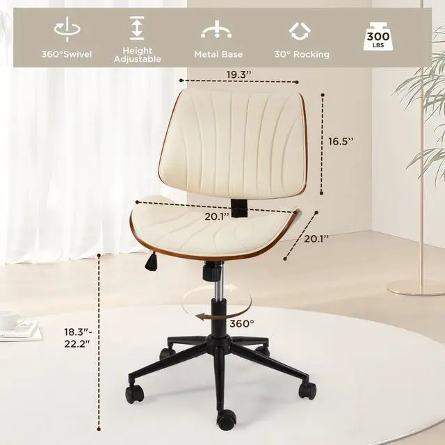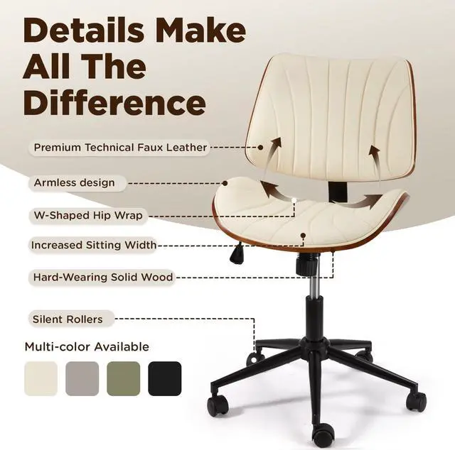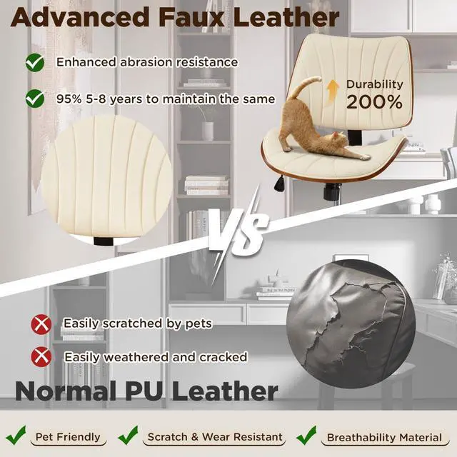 For Lasting Elegance: our small leather modern desk chair features premium scratch-resistant PU leather and a reinforced wooden back. This office chair no arms withstands even pet claws while maintaining its sleek profile. Worry-free sophistication that stays beautiful through years of daily use!