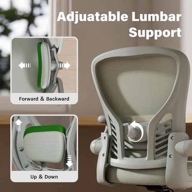 Adjustable Lumbar Support: The grey ergonomic desk chair allows full control over your seating posture. Adjust the support up, down, back, or forward to align with your back, providing personalized support and reducing strain during long hours of sitting