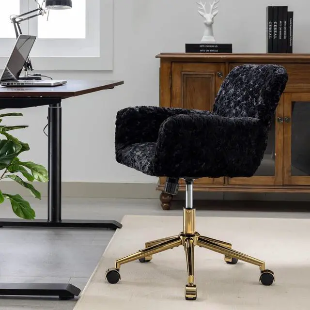 BEAUTIFUL & FUNCTIONAL ACCENT CHAIRHomVent black faux fur desk chair make an elegant addition to brighten up any room in your home decor. This black fluffy faux fur chair is suitable for different environments, it can be used as a living room chair, home office desk chair, makeup vanity chair, bedroom chair, study chair, also can be used as a kid room chair.