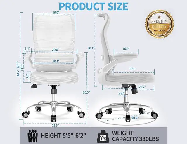 LONG WARRANTY: The office desk chair has fully equipped backrest and tools, 15 minute easy installation. The office chairs warranty is up to 5 years and we provide you with 1V1 and 27h response service to ensure a good experience
