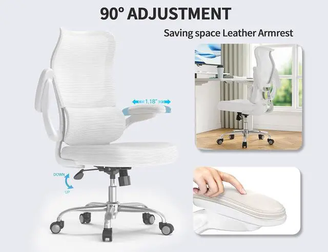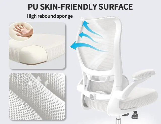 MESH BACKED & LEATHER CUSHION: The mesh office chairs can promote air circulation, prevent sweating, and reduce back stuffiness; High quality PU leather seats for home desk chairs can prevent scratches, stains, and cracking from overflowing, making them more durable and suitable for long-term sitting