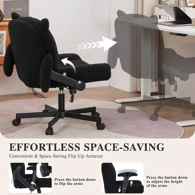 Ergonomic Excellence for Extended UseThe ergonomic criss cross legged office desk chair prioritizes health with a padded backrest targeting lumbar pressure points and a wide desk chair seat edged with reinforced foam for safety. Adjustable armrests and breathable teddy fabric adapt to typing, reading, or making up. A lovely office chair for dynamic workflows. Its ergonomic desk chair design reduces fatigue, making it ideal for all-day use