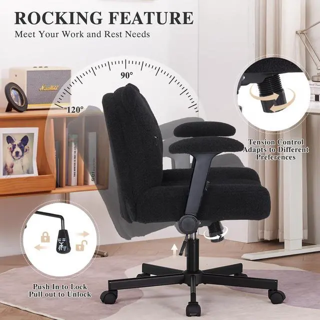Luxurious Teddy Fleece for All-Day ComfortExperience luxury with this comfy cross legged computer desk chair, upholstered in ultra-soft teddy fleece and padded with a thick cushion, high-resilience sponge for structure and pressure relief. As an upholstered criss cross desk chair with wheels, it enable seamless mobility on carpets, hardwood, or tiles, while its stain-resistant fabric and modern colors blend into any decor. Ideal as a versatile swivel office chair or wide comfy reading chairs, it transitions effortlessly between workstations, vanity desks, or relaxation zones
