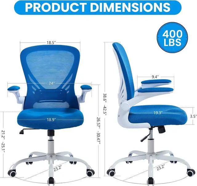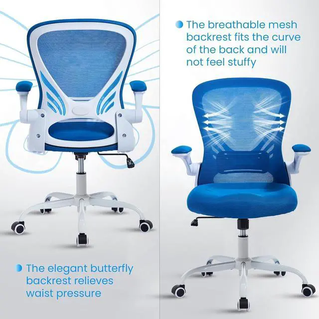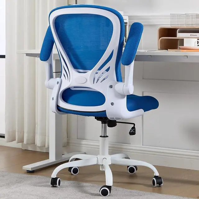Flip-up Armrest ChairSay goodbye to wasted space! This mesh computer chair features 90-degree flip-up armrests that pivot up and out of the way in seconds. When raised, the chair slides smoothly under your deskperfect for compact home offices, tiny apartments, or shared workspaces where every square foot matters. No more bulky chairs crowding your floor: just tuck it away and free up room for whatever' s next.