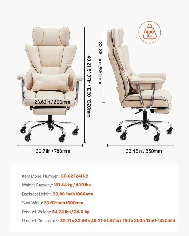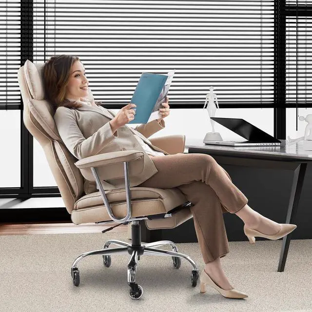Built to Last: This heavy-duty executive desk chair is designed to support up to 400 lbs / 181.44 kg, making it a great choice for both home and office use. With a generously padded seat and a reinforced metal base, it promises comfort and durability for years to come.