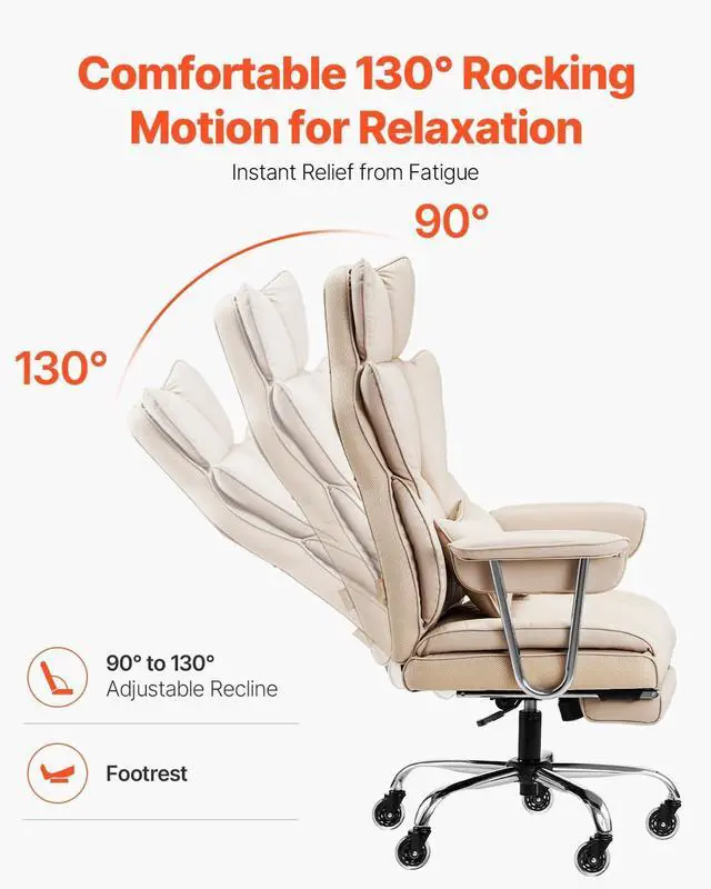 Comfortable Recline: This model features a 100°-115° rocking angle, ideal for a gentle tilt that promotes relaxation. The adjustable lumbar pillow specifically targets lower back fatigue, providing extra comfort during long sitting sessions. The waterfall-edge seat cushion also reduces pressure on your legs, making your sitting experience even more enjoyable.