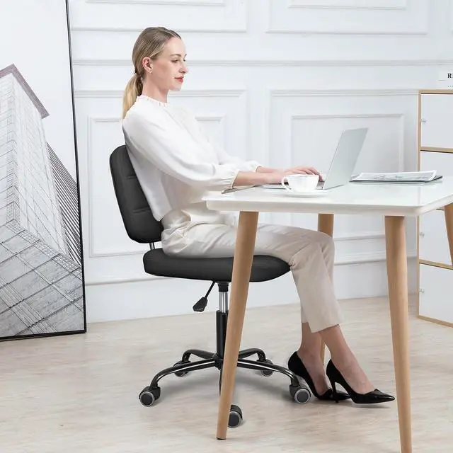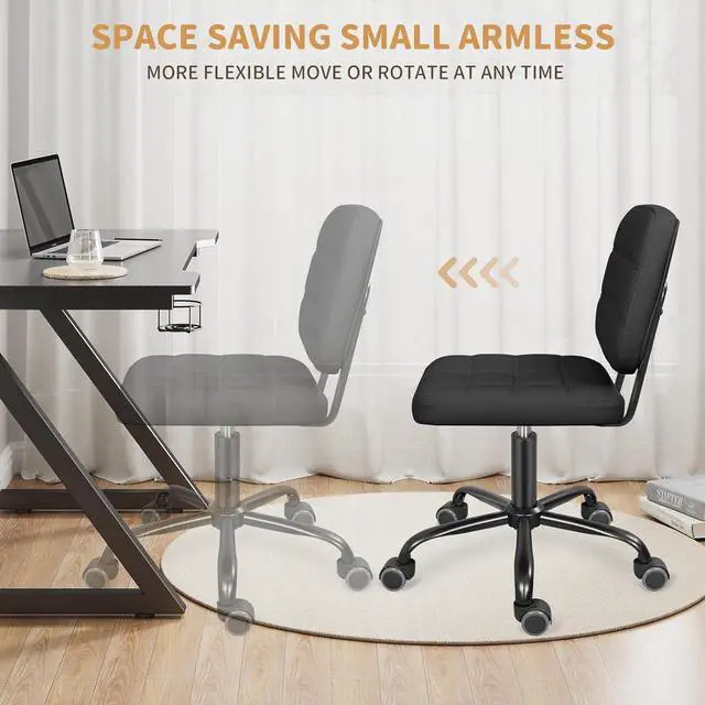 Adjustable Space Saving: The height-adjustable dimensions ensure the small armless office chair will fit perfectly into any office or workspace. The armless design makes it easy to store it under your desk when not in use, maximizing the available space in your office, bed room, and vanity area.