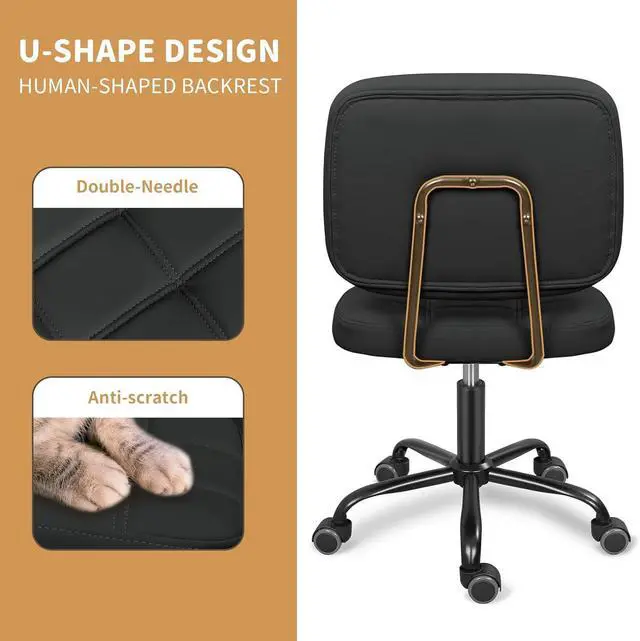 Enhanced Ergonomics: The armless office chair is ergonomically designed for optimal comfort and support. The backrest is specially designed with padded foam to provide excellent lumbar support that is not only comfortable but also soft to the touch. Its backrest is made of high-quality double-needle PU leather, ensuring greater stability and durability.