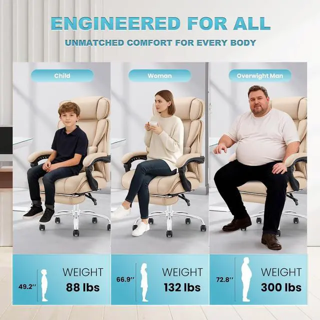 MADE FOR ALL-DAY COMFORT: Our ergonomic office chair is designed with your comfort in mind, allowing you to sit for extended periods of time without any discomfort. The thick and soft leather provides a luxurious feel while offering excellent support. The high back design offers full-body support, while the removable lumbar support pillow provides extra support for your lower back. What' s more, the pull-out footrest allows you to take deeper relaxation breaks when you' re tired