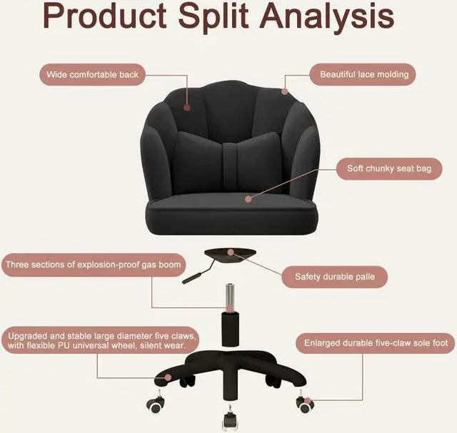 Cute Petal DesignWhat makes this chair stand out is its velvet upholstered seat in blooming flower design; The arms and back resemble three flower petals; This pink flower-shaped chair goes well with any cute pink, white, or any warm-toned interior style