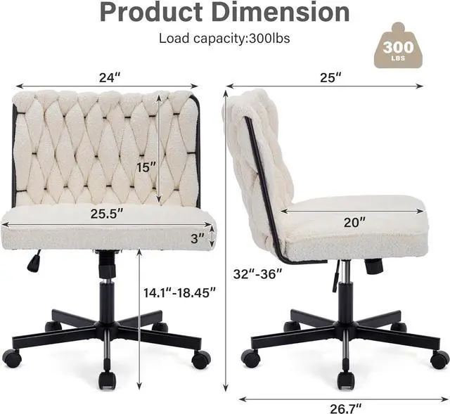 Wide Seat & Armless Desk ChairSitting in the 25.5 " wide seat is more freedom to adjust your posture and find a more comfortable sitting position. With no armrest limitations, it can be placed completely under the table to save you space. Ideal for use in an apartment.