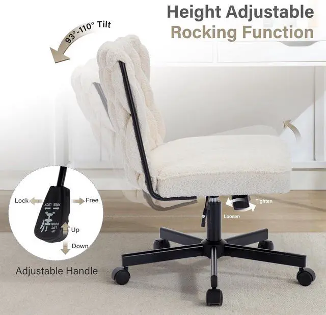 Rocking angle: 93°-110°. The frame of the chair is made of a strong metal frame and plywood. In addition, the chair is equipped with an SGS-certified level 3 gas lift, which is able to bear a weight of 300 lbs.