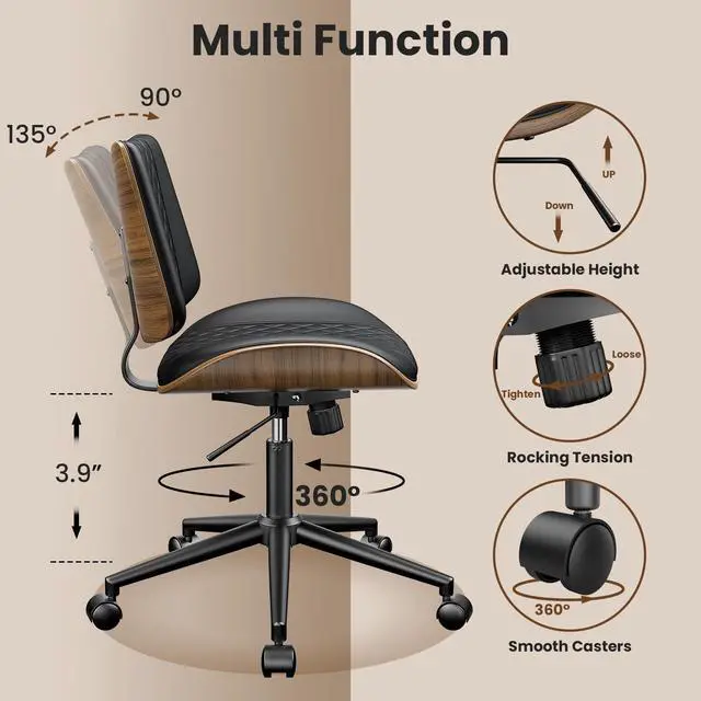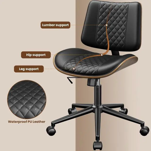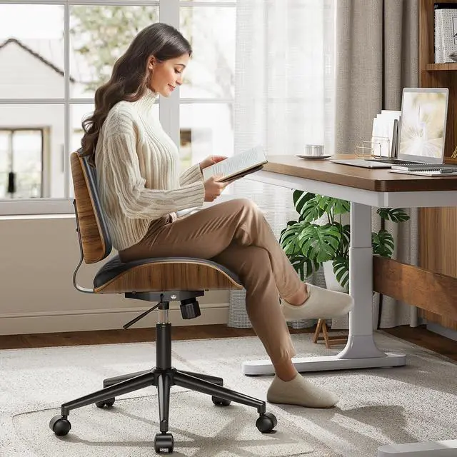 Stylish & Modern DesignPaired with stylish & smooth PU leather and walnut backrest, the armless office chair combines functionality with beauty, adding a modern mid-century aesthetic to upgrade Your workspace. Perfect for home office, reading room, and study room.