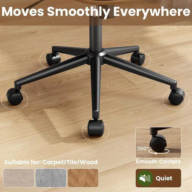 Smooth CasterEquipped with flexible 360° silent casters, this home office chair with wheels allows for effortless movement in any direction, enhancing your mobility within the workspace.
