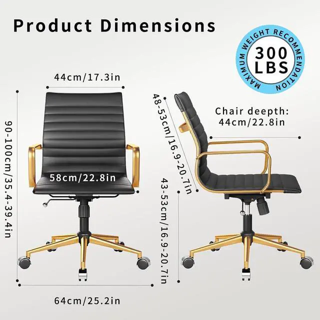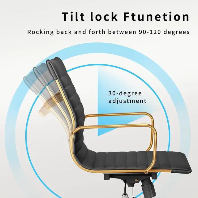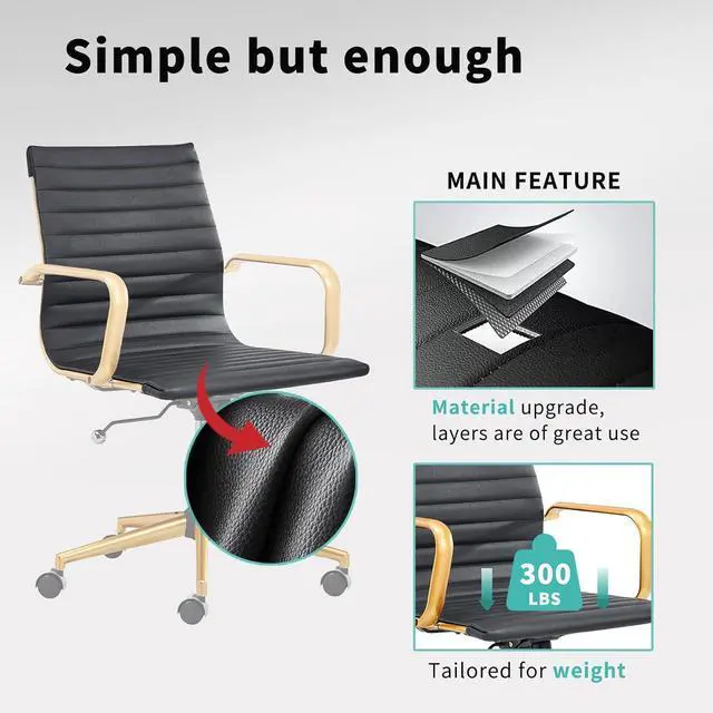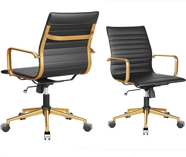 Chic Gold Accents: Mid-back office chair with gold-plated armrests and base brings a luxe touch to any workspace; this desk chair elevates modern offices with premium style.