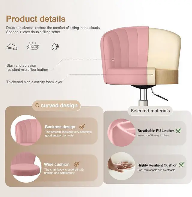 Easy to assembleAssembly completed in 5 minutes. This desk chair can be used in multiple scenarios, including as a makeup chair, study chair, work chair, office chair and salon chair.