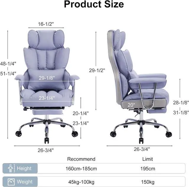 EASY ASSEMBLY AND WORRY-FREE PURCHASE OFFICE CHAIRS: Assembly is quick and hassle-free with all necessary hardware and tools included with our home office chairs. Install your new high back office chair within 15-30 minutes for immediate use. For any inquiries or assistance regarding our desk chair with foot rest, please don' t hesitate to contact us.