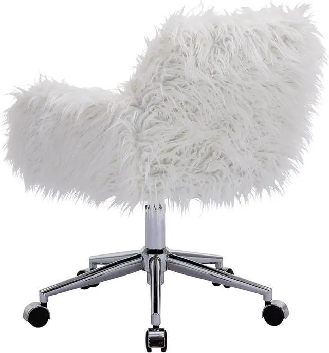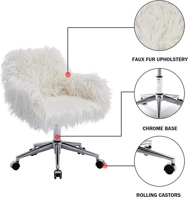 Multi-Functional White Furry Desk ChairsThis elegant swivel chair is suitable for every environment, which is perfect for living room as a leisure chair, bedroom as a vanity chair, office as a computer chair, study room as a study table chair and reception area as a guest chair etc