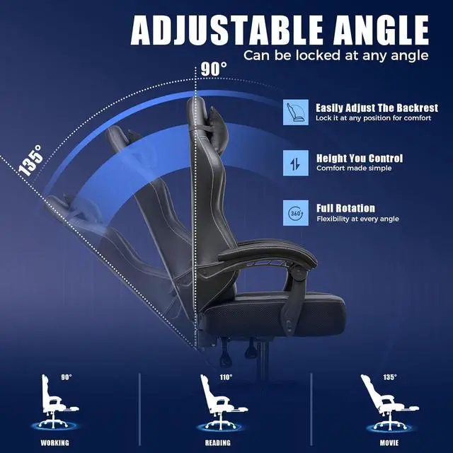 Recline in Style & Comfort This leather gaming chair with reclining feature lets you lean back effortlessly and find your perfect angle, while the premium PU leather surface offers a smooth, soft touch thats easy to clean and built to last.