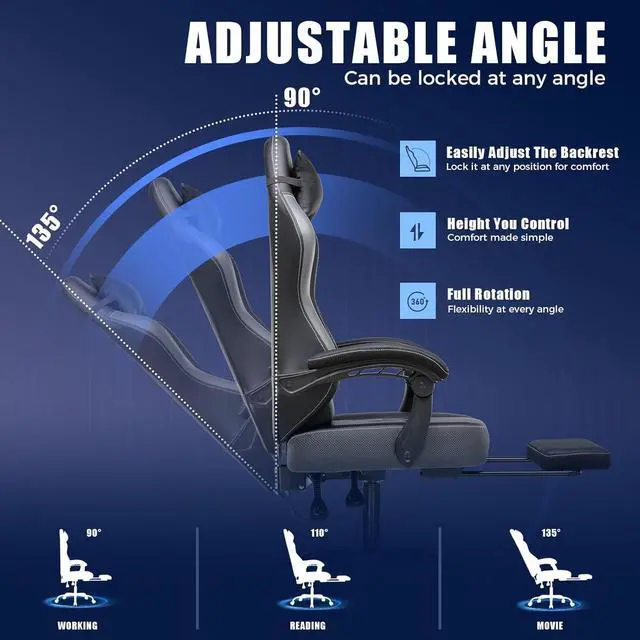 Recline in Style & Comfort This leather gaming chair with reclining feature lets you lean back effortlessly and find your perfect angle, while the premium PU leather surface offers a smooth, soft touch thats easy to clean and built to last.