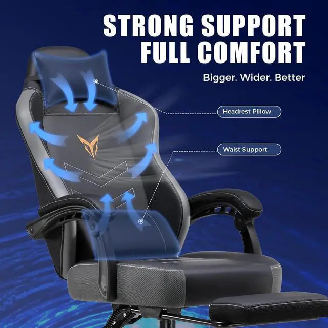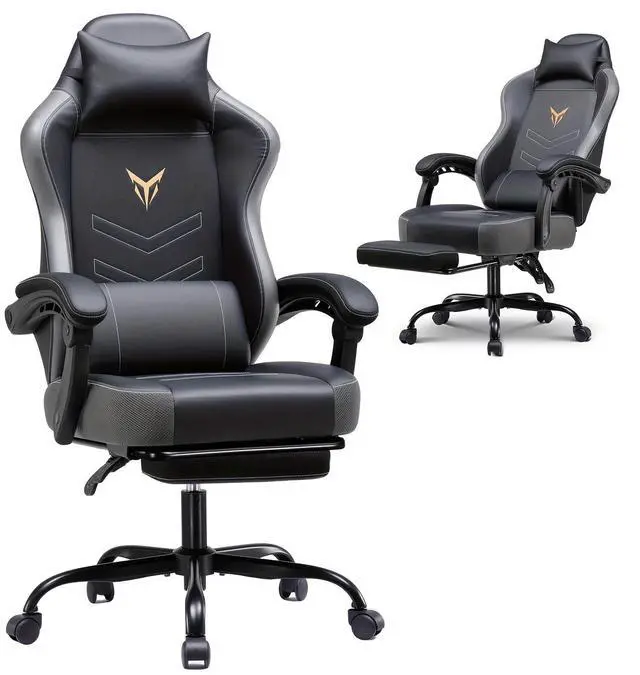 Ultimate Comfort & Relaxation This gaming chair comes with a soft headrest and supportive lumbar pillow. When long hours of gaming or work leave your neck tense, the headrest provides instant relief. Lean back and let the waist cushion help you relax and stay energized.