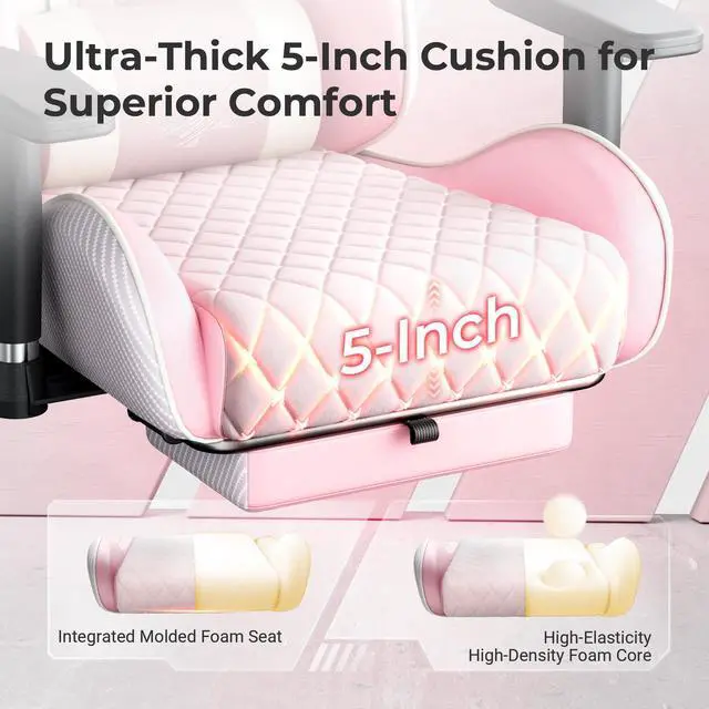 Spacious Seating: Boasts an oversized seat cushion with over 5 inches of high-density elastic molded foam, designed to support multiple postures including cross-legged sitting.