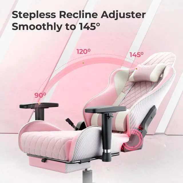 Seenda GCPro-10 Gaming Chair, Big and Tall Video Game Chair with Footrest, High Back Ergonomic Computer Desk Chair Height Adjustable with Headrest and Lumbar Support Pink