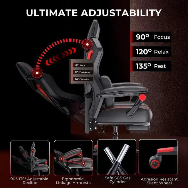 Ergonomic Support: This computer chair offers full-body support for the head, back, hips, arms, and legs, with adjustable seat height and backrest for personalized posture needs.