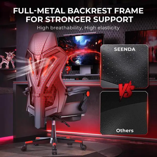 Seenda Massage Gaming Chair, Computer Chair with Mesh Back, Ergonomic Office Desk Chair with Footrest, Reclining Video Game Chair with Adjustable Headrest and Lumbar Support for Gaming and Office