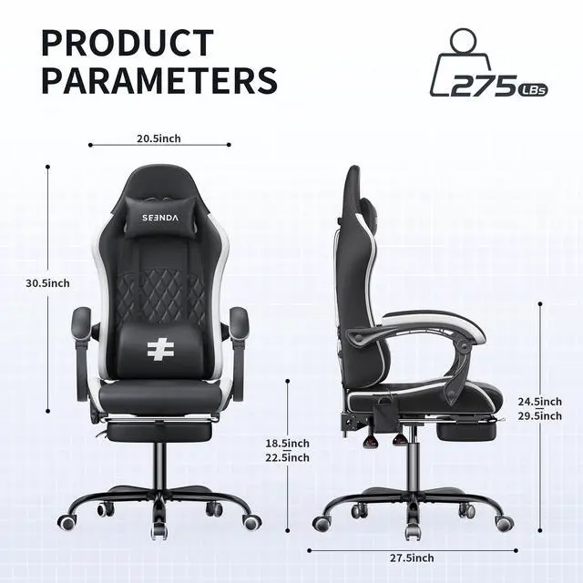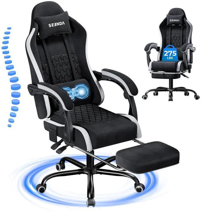 Seenda Massage Gaming Chair, Fabric Office Chair Ergonomic Desk Chair, Video Game Chair with Footrest and Massage Lumbar Support, High Back Computer Office Chair with Headrest, 275Lbs, Black