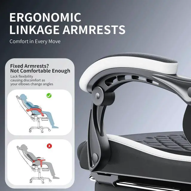 Stable Armrests: Upgraded linkage armrests with built-in round bearings improve stability, preventing shaking and allowing arms to remain relaxed when adjusting the chair's back.