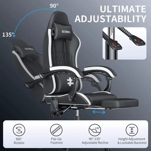 Ergonomic Comfort: Designed with an adjustable headrest, a retractable footrest, and a 90-135 degree reclining function for enhanced neck, head, and overall comfort.