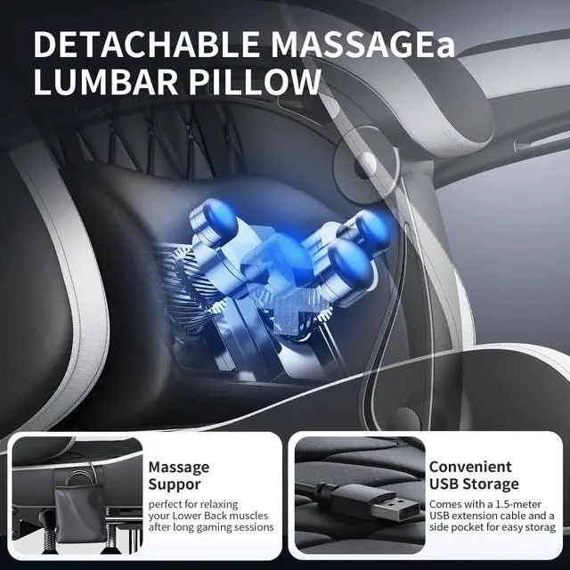 Massage Functionality: Includes a multi-use portable massage lumbar support with intelligent finger sensation massage for deep relaxation and effective reduction of lower back discomfort.