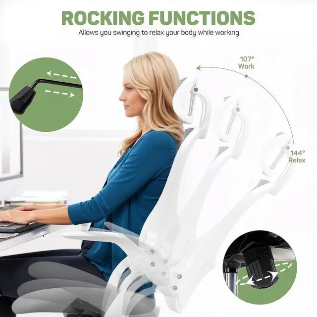 4. Relaxing Tilt: Rocking function with a tilt range of 107 to 144 degrees helps switch between focus and relaxation modes.