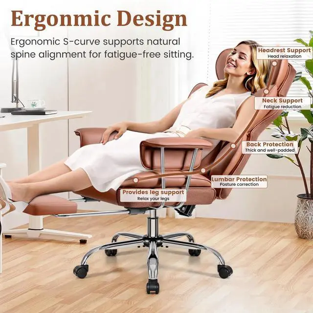 COOLHUT Big and Tall Office Chair 500LBS Wide Seat Ergonomic Computer Desk Chair, PU Leather Executive Office Chair with Footrest, Adjustable Task Chair Lumbar Back Support 8 Hour, Brown