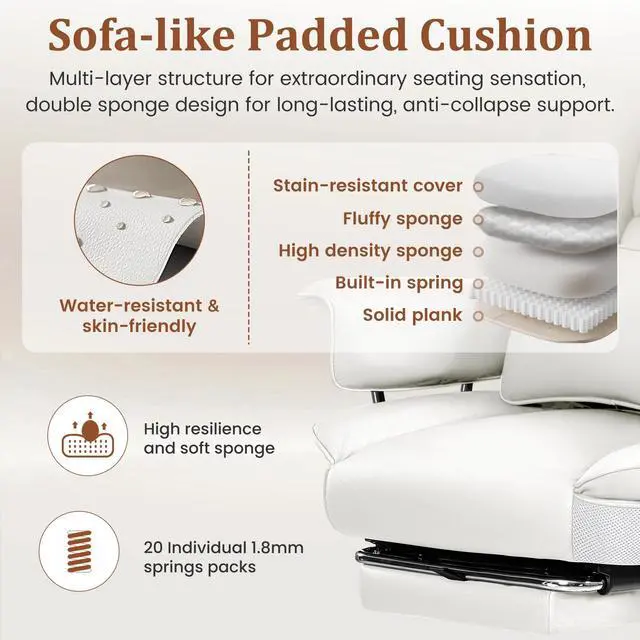 Robust Construction: Built with a heavy-duty metal base, supporting up to 500 lbs, and upholstered in PU leather for durability and style.