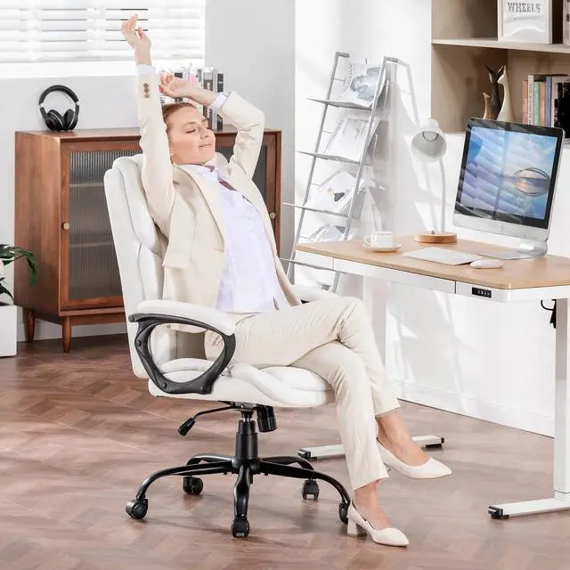 Mainstays Executive Ergonomic High Back Leather Home Office Desk Chair, White