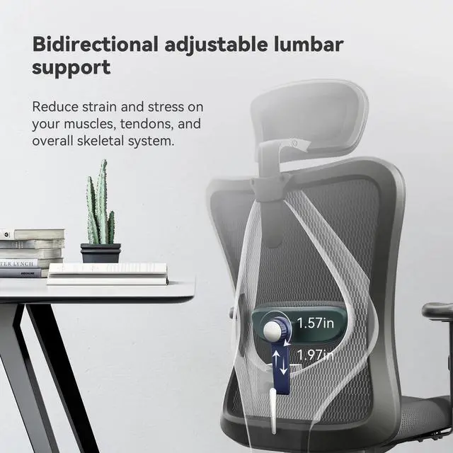 Adjustable Armrests: Equipped with soft armrests that adjust 2.8 inches up and down to suit various body shapes, postures, and desk heights.