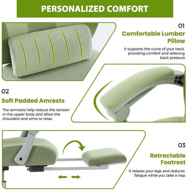 Adjustable Customization: Includes an adjustable headrest, retractable footrest, and height-adjustable feature to personalize the sitting experience for various activities.
