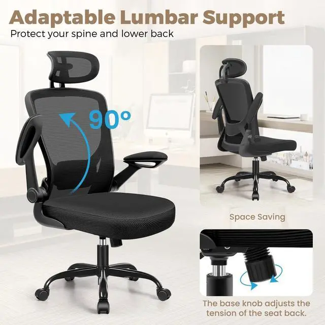 Comfortable and Safe Design: High-density and breathable mesh back with lumbar support, along with a thick cushion for maximum comfort. With a maximum capacity of 400 lbs, this chair is built to accommodate individuals of various sizes.